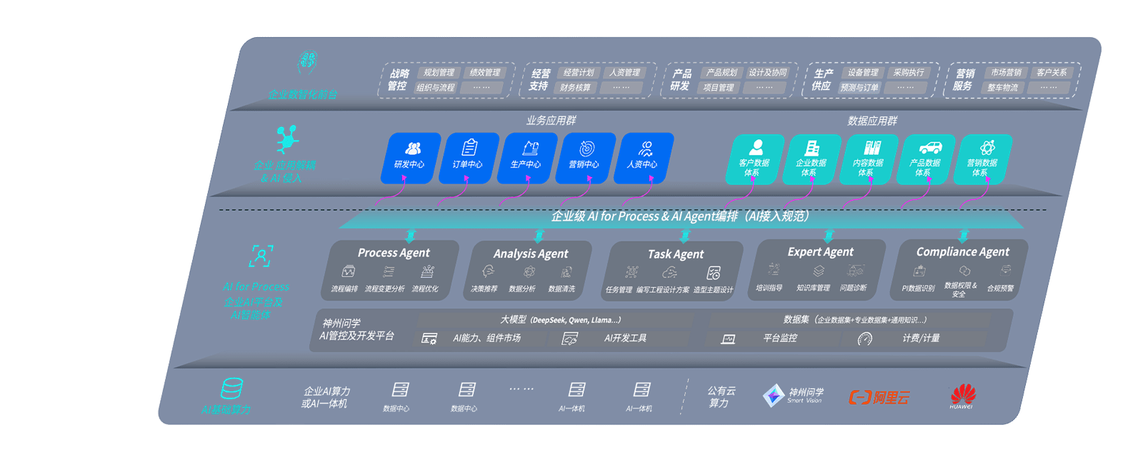 迪威国际问学智车解决方案是一套基于AI技术的汽车行业智能化系统,,,覆盖从底层算力到顶层AI应用的全栈方案。。方案由算力层、、、、模型层和应用层组成:算力层,,,,方案支持多种一体机配置,,具备云端灵活部署、、、、多云适配以及动态优化计算资源的能力;模型层,,,迪威国际问学平台版提供了企业级AI应用一站式构建与管理平台,,支持基于后训练强化技术的汽车企业专属模型的训练、、评测和运营;应用层,,,,迪威国际问学DeepSeek版提供包括超级员工、、、智能招采、、、智能营销、、、、智能客服、、AI for BI等一系列解决方案,,,可助力汽车行业实现数字化转型,,让管理更智能、、、响应更敏捷。。。。
